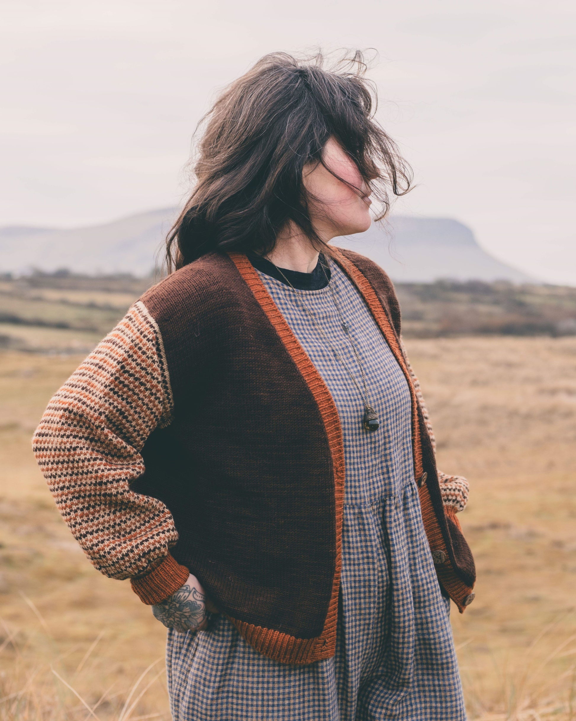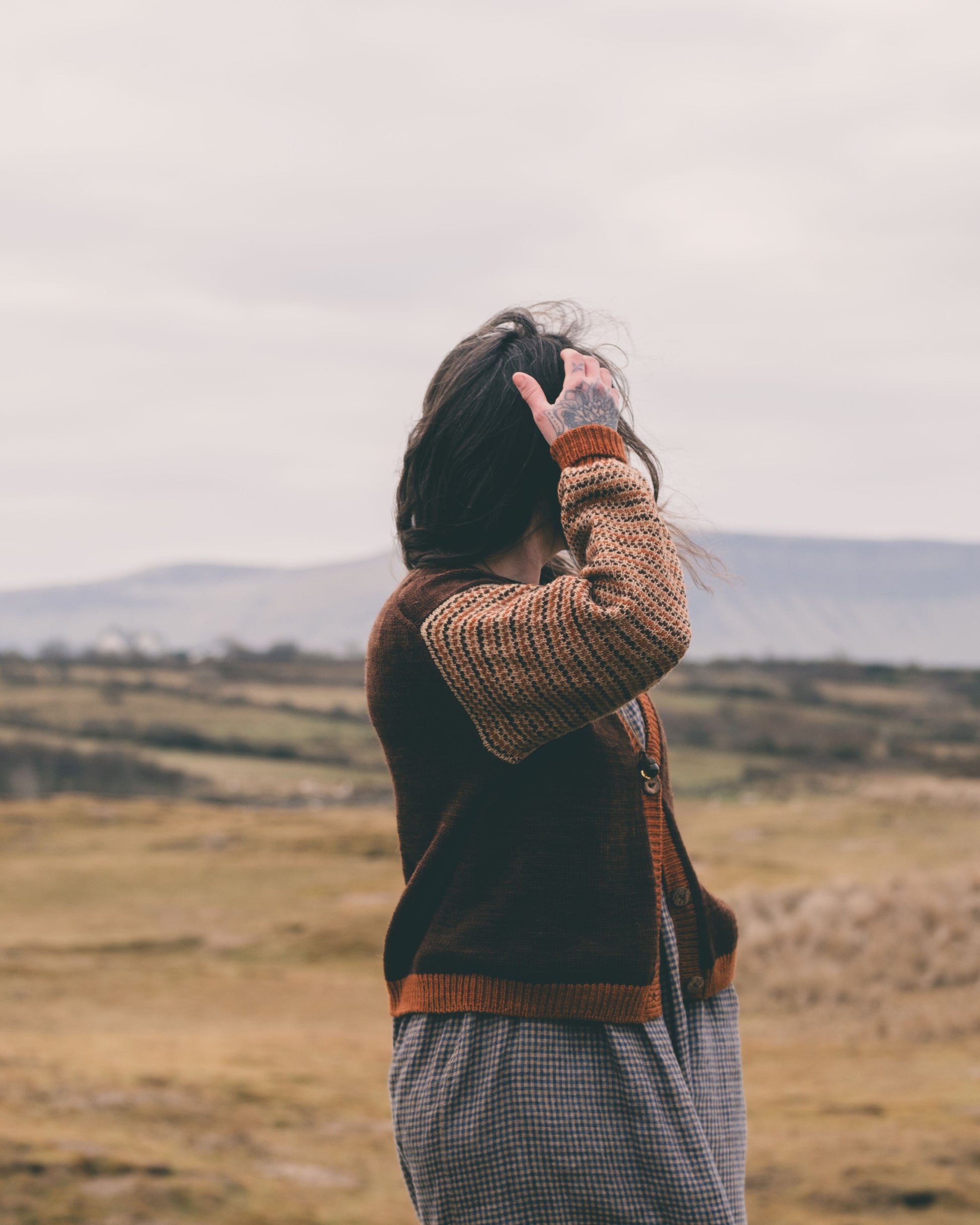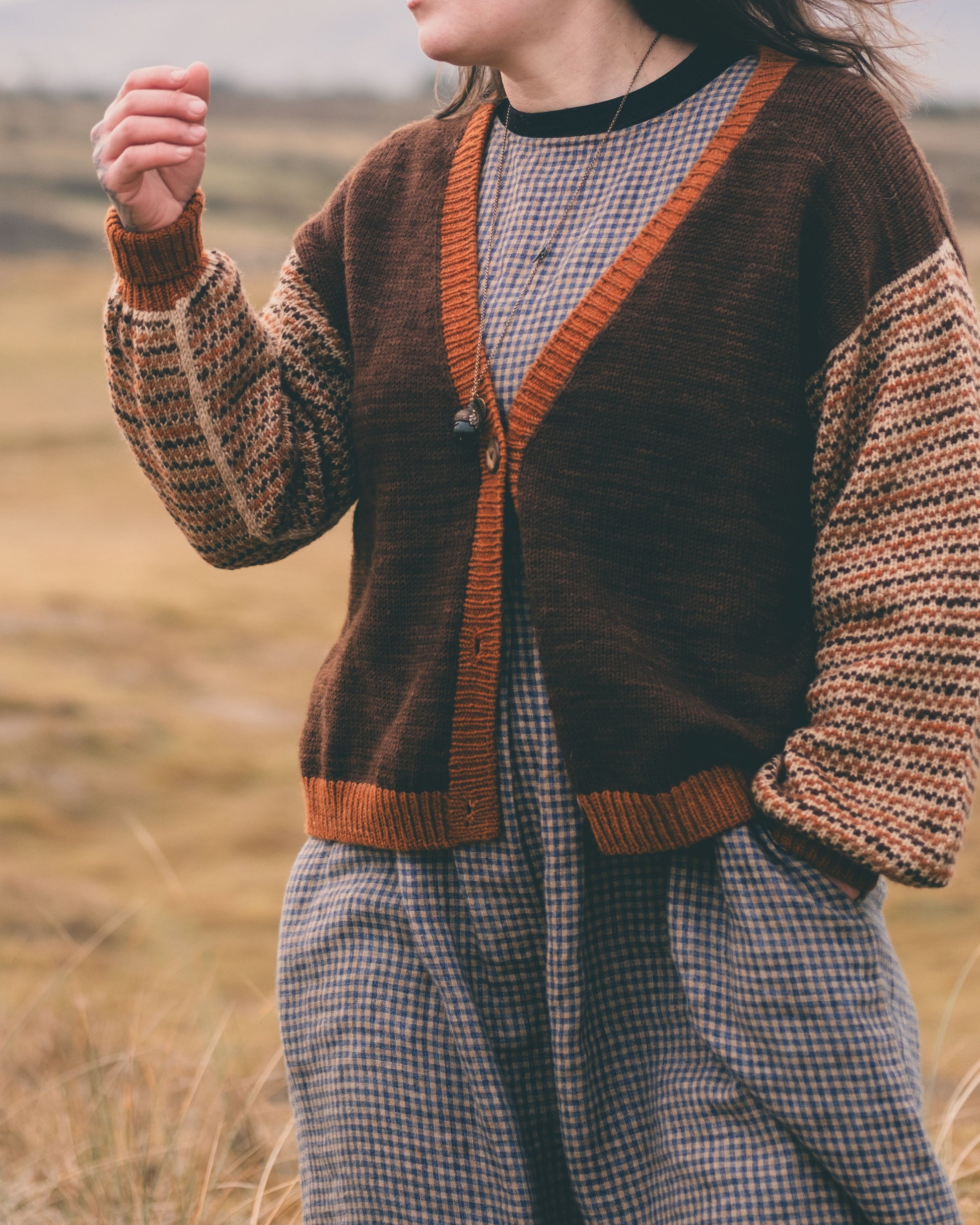 As the cardigan is knitted top-down, you can also decide on the length as you go. The pattern and the yardage have been given for an average height of 165 cm / 5‘5’’ and a slightly cropped fit.