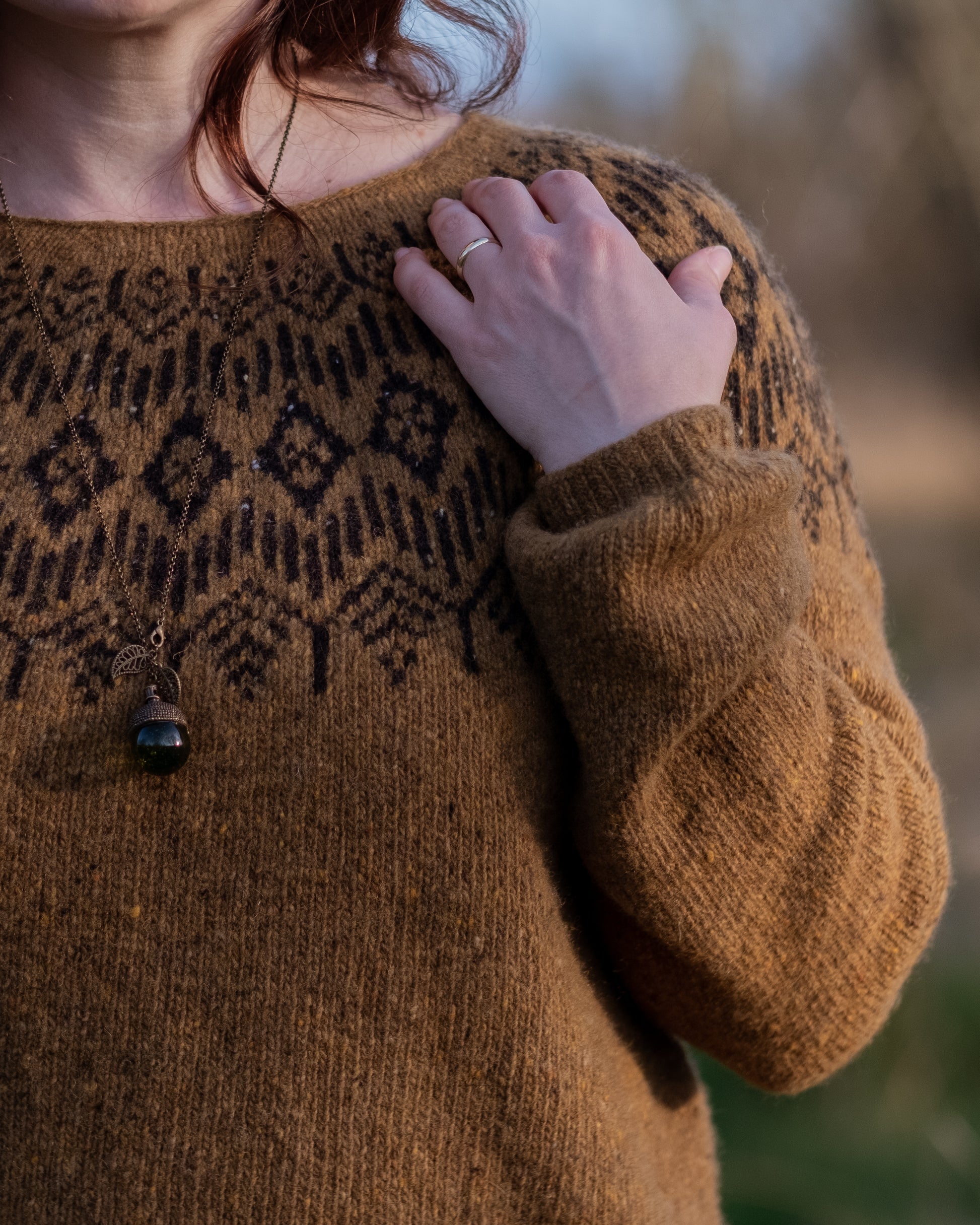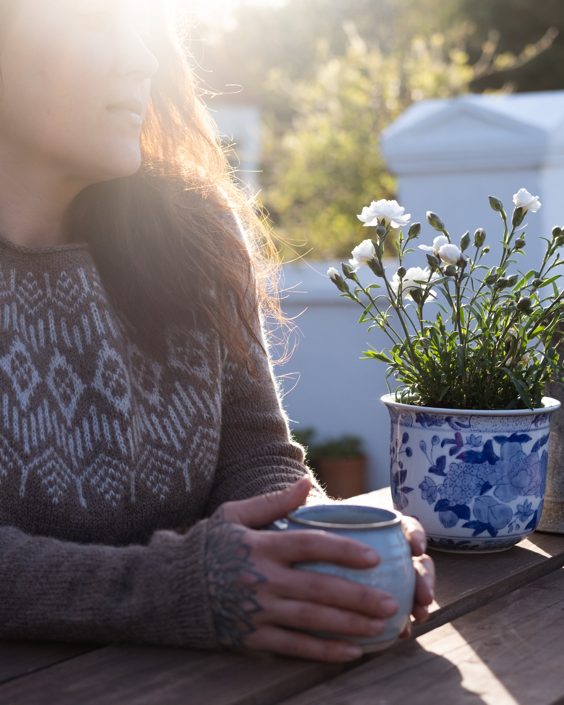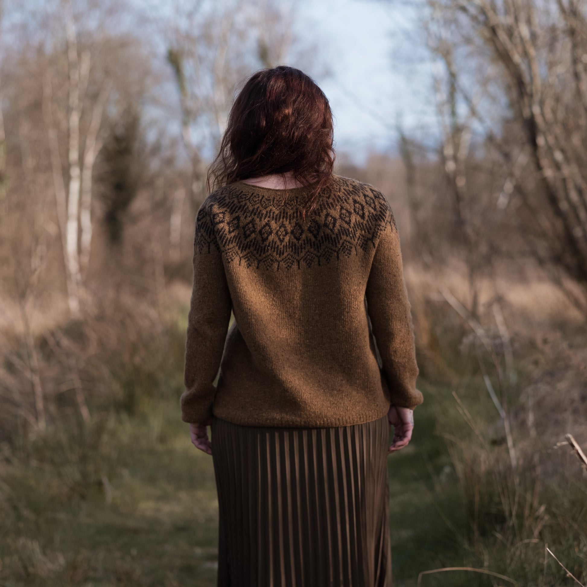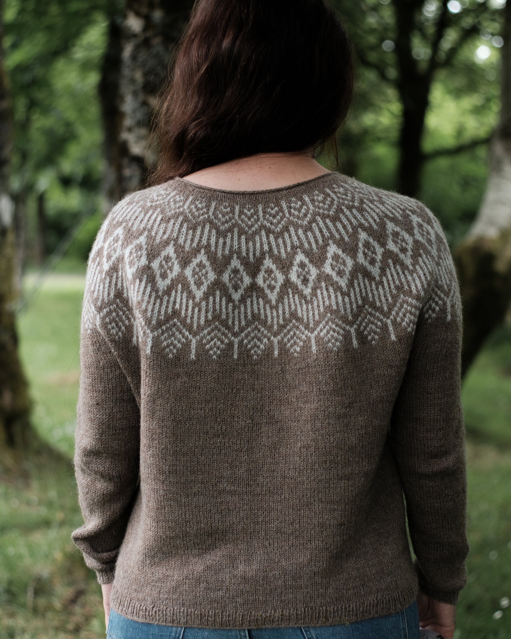 ASTRA is a stranded colourwork sweater with a top-down construction. Starting with the neck, the sweater is worked seamlessly top down, using short rows to shape neckline. The increases of the yoke are done using M1L and M1R methods.