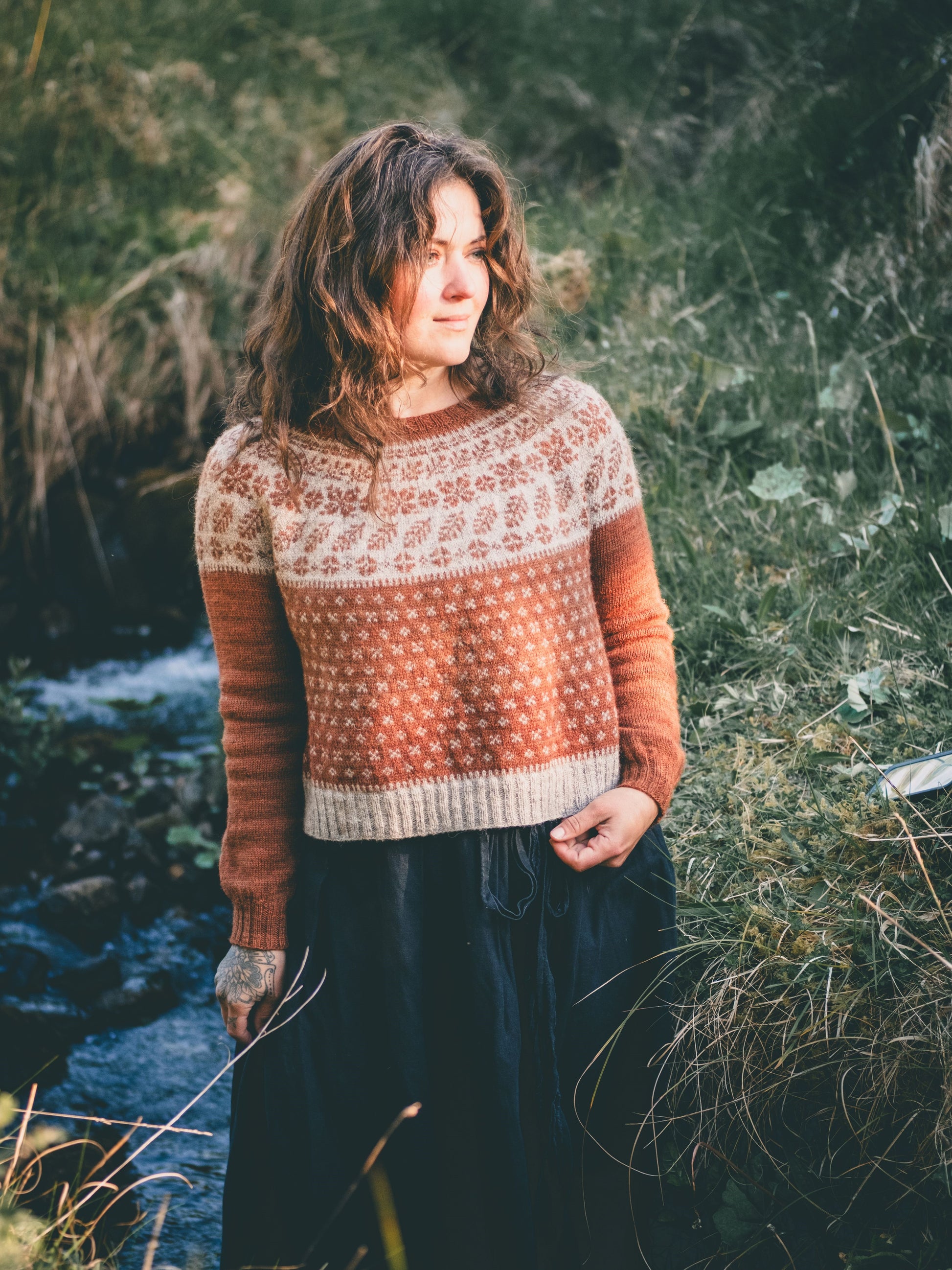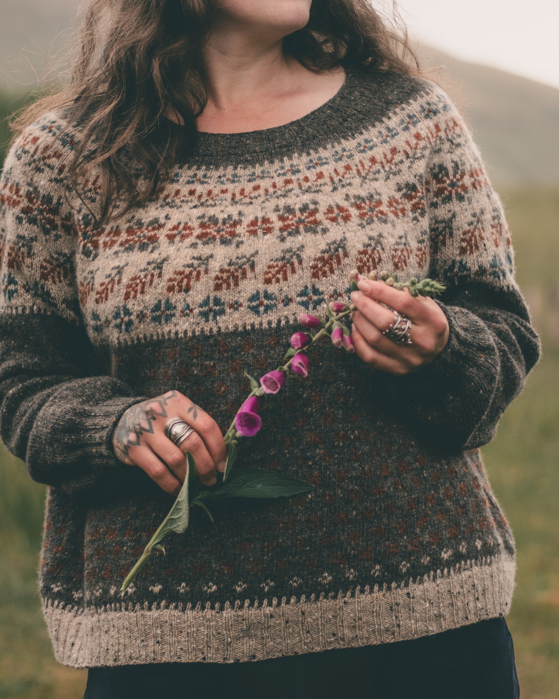 GLENIFF is a round yoke sweater with a top-down construction, relaxed boxy fit and colourwork on the yoke and body. This pattern was inspired by the beautiful Gleniff Horseshoe where I spend countless hours walking my dog and talking to the sheep, and its changes through the seasons. The pattern offers 2 colourwork options: using either 2 or 4 colours.