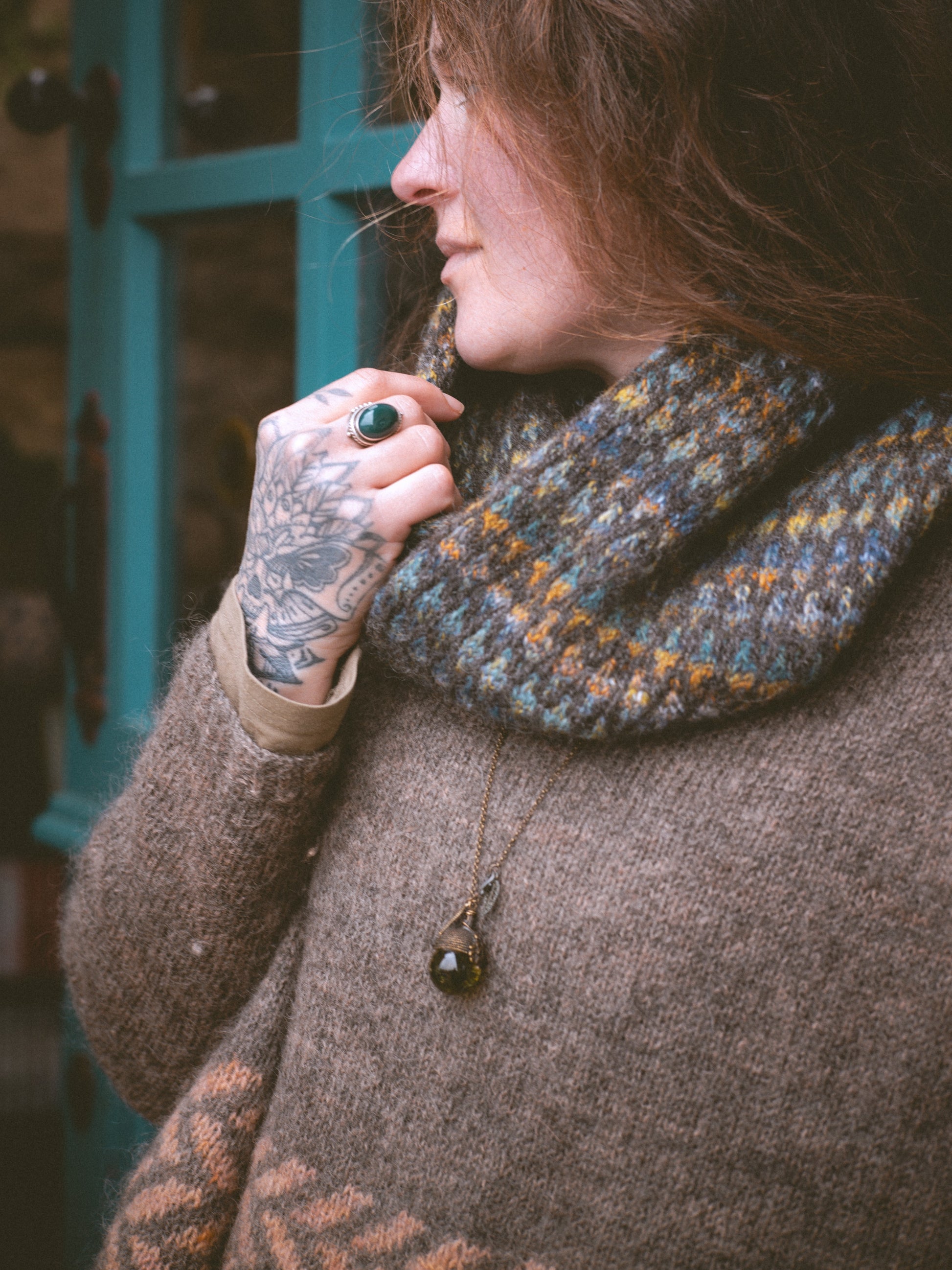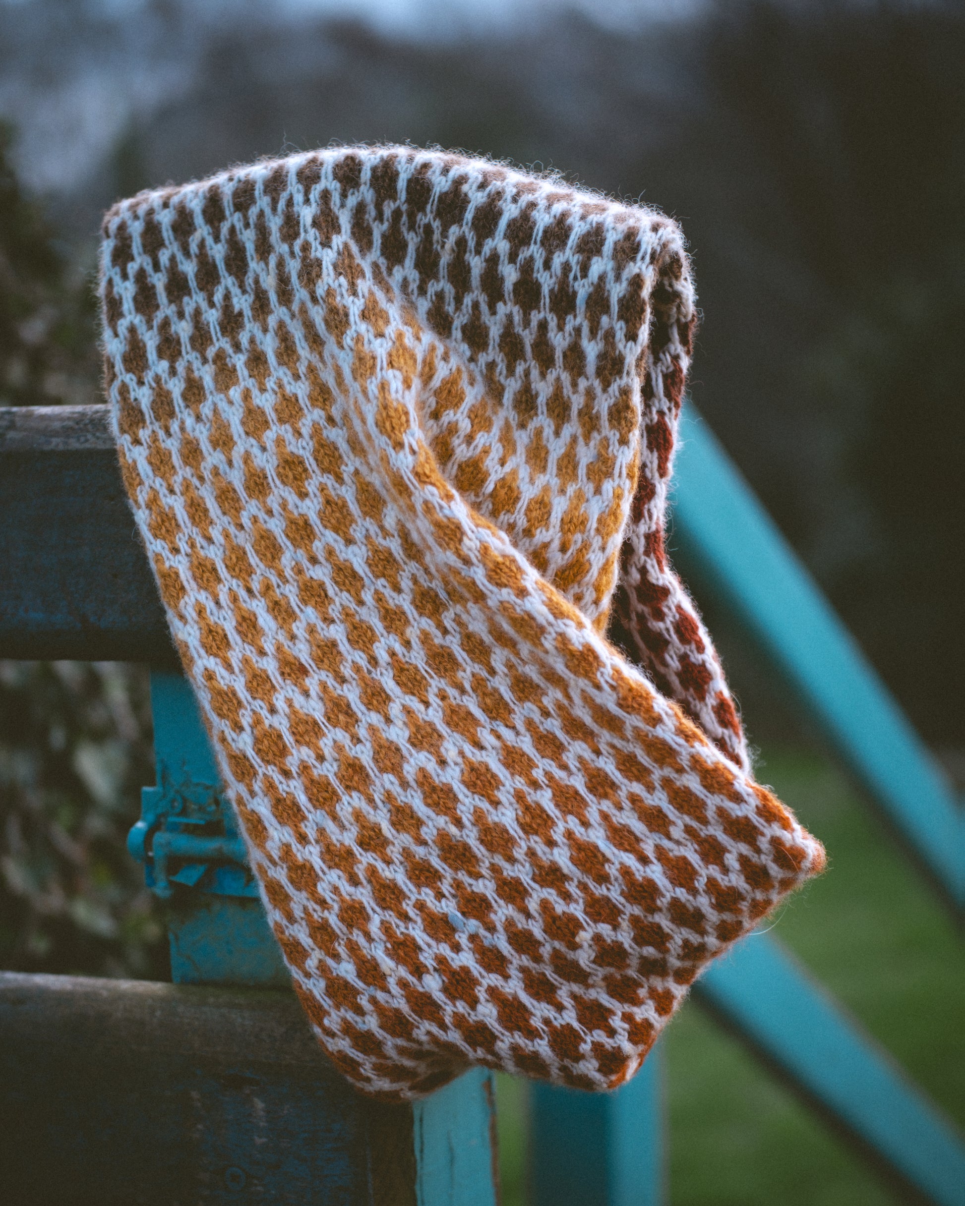 Laitís is a simple cowl worked in the round using slipped stitches (mosaic knitting) to achieve a lattice pattern with endless possibilities for colour and yarn combinations. Only one colour is worked at a time, making it quite a relaxing yet engaging knit once you get familiar with the stitch pattern. This cowl is great for using single skeins of colour-shifting or long gradient yarns, mixing and matching mini skeins and leftovers and, of course, using your own handspun to achieve fun colour effects.